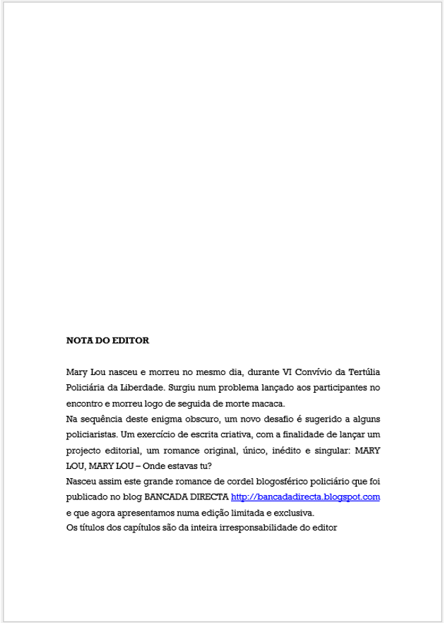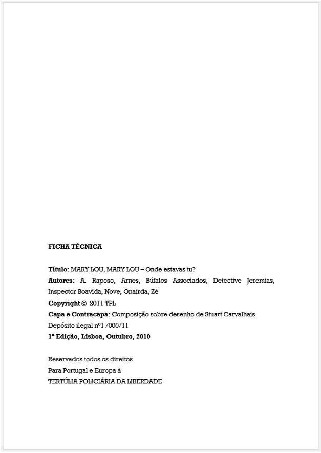 MARY LOU, MARY LOU – Onde estavas tu?, Edições Fora da Lei, Ano de 2010