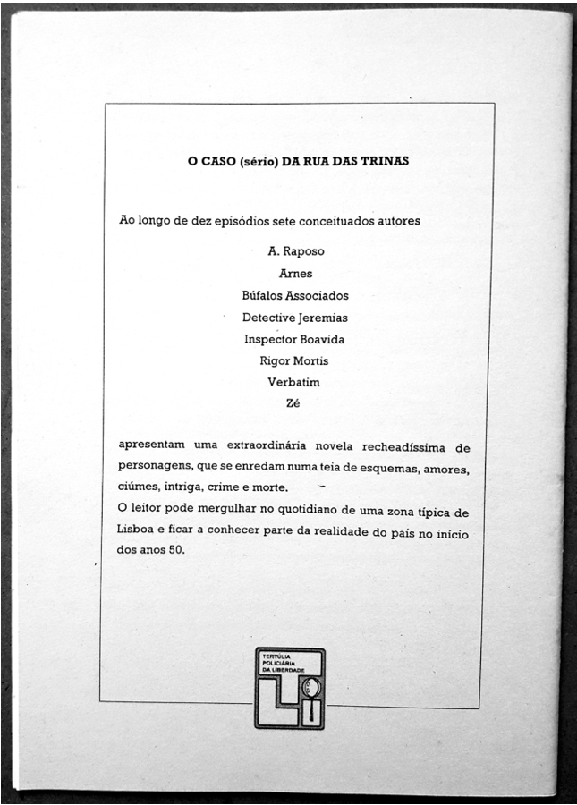 O CASO (sério) DA RUA DAS TRINAS, Edições Fora da Lei, Ano de 2018