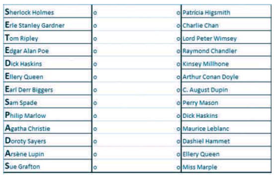 quadro mistura os nomes de escritores e detetives, sem qualquer ordem