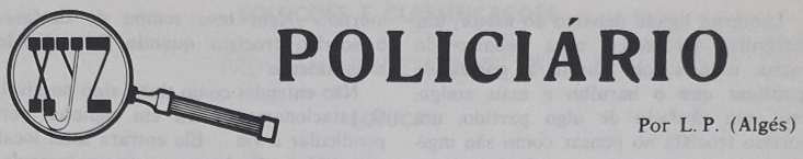 PALAVRAS NECESSÁRIAS» Continua a decorrer o nosso Campeonato Nacional. Hoje teremos a prova nº 6. Prova que não tem, ao que sei, qualquer patrocinador. Quem quer patrocinar o Convívio de Agosto e, por conseguinte, a prova deste mês? Famalicão? Porto?… Começa já a organizar-se e a tomar forma o Campeonato Nacional do próximo ano. Muito mais organizado, muito mais interessante, muito mais planeado e menos sobre o joelho. Quem quiser organizar provas no próximo ano, deve comunicar o mais rapidamente possível. O espaço entre a publicação da prova e o convívio será alargado de dois para três meses, a contar com possíveis atrasos. Assim, a prova de Janeiro terá convívio para atribuição de prémios em Abril e não em Março, e assim por diante. Venham patrocinadores e bons problemas para que seja um torneio de qualidade! Qualidade que este ano não tem sido muito cuidada. Assim, debatemo-nos com enorme falta de originais, o que nos tem forçado a recorrer a problemas mais dúbios, alguns dos quais a carecer de variadas correcções. Que é feito dos bons produtores da nossa «praça»? E posto isto, vamos ao I CAMPEONATO NACIONAL DE PROBLEMAS POLICIÁRIOS PROVA Nº 6 ETAPA DE FAMALICÃO UM CASO ESCURO… Domingo, 23 de Outubro de 1979. Onze e quarenta e